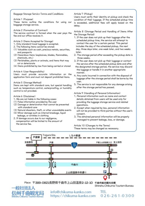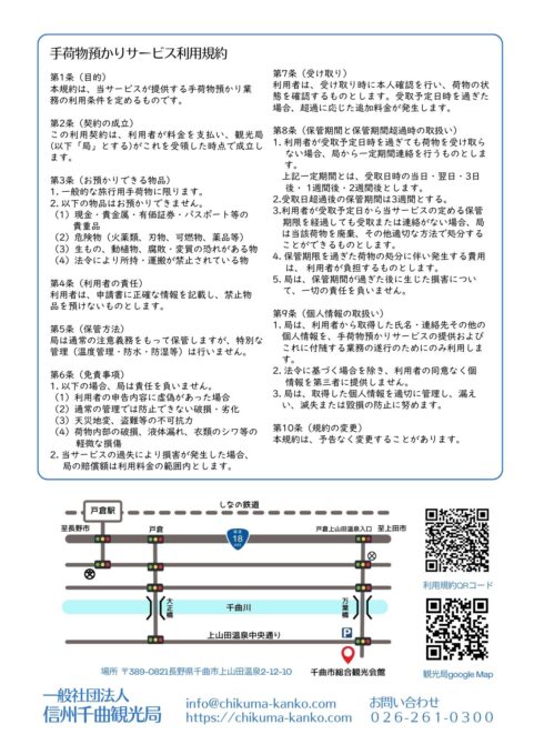 信州千曲観光局の窓口にて、お荷物の一時お預かりをいたします。